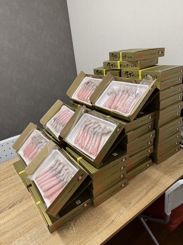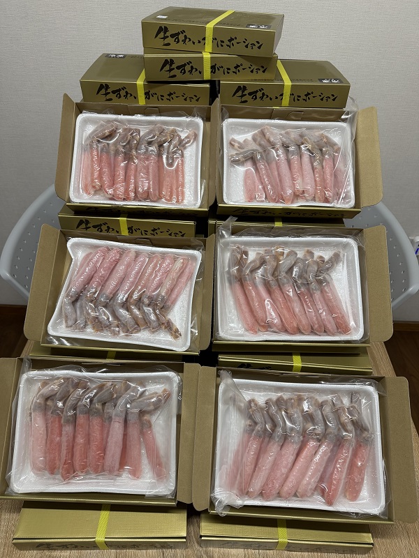生ずわいがにポーションを1人1kg(約30本)プレゼントしました(≧▽≦)