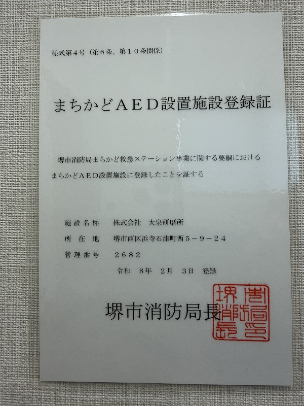 先日、AED入門コース受講の際に堺市消防局の方から協力依頼を受け登録しました(#^^#)