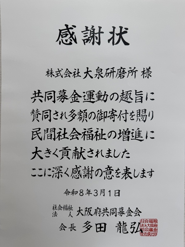 ㈱大泉研磨所では、地域社会への貢献に取り組んでおります。